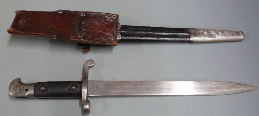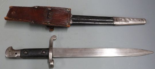 British 1887 pattern Martini Henry sword bayonet Mk3, Wilkinson stamp to ricasso, with shortened 30cm blade, scabbard and frog
