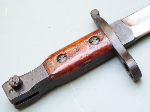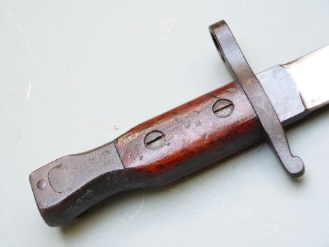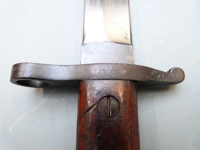 Canadian M1910 pattern knife bayonet for the Ross rifle with clear stamps to pommel and 25cm hatched pointed blade