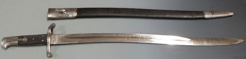 British 1856/58 pattern sword bayonet, 57.5cm fullered yataghan blade, with scabbard