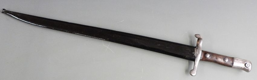 Austrian/ Portuguese 1886 Steyr sword bayonet with 47cm fullered blade and scabbard