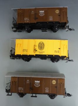 Three Newqida G gauge railway vans including Railway Express Royal Giving Special Tunnel.