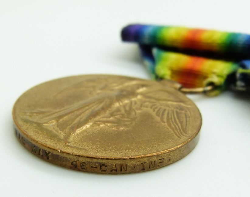 British and Imperial Forces WWI family group of medals comprising War Medal and Victory Medal named to 258545 Pte J Mackay 46th Canadian Infantry with Canadian Memorial Cross, sports day medals and copy paperwork etc. WWI War Medal named to 143562 Gunner D Mackay Royal Artillery, Edward VII coronation medal and three sports medals. (Pte J Mackay enlisted in Canada 22/2/18, arrived in England 3/4/18, deployed on the Western Front 25/9/18 and was killed in action 1/11/18)