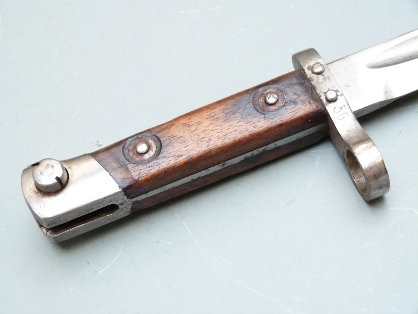 Austrian 1895 pattern Mannlicher bayonet with OE over WG to ricasso, 556 to crosspiece, 25cm fullered blade, scabbard and frog