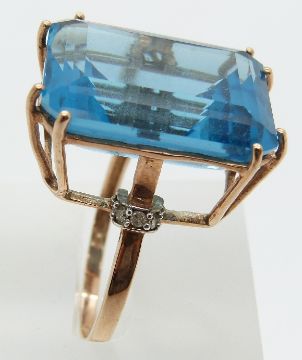 A 9ct gold ring set with an emerald cut treated blue topaz and diamonds, 8.4g, size Q