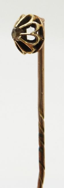 Victorian yellow metal stick pin set with a rose cut diamond