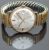 Garrard 9ct gold gentleman's wristwatch with date aperture, gold hands and baton markers, silver dial and manual winding movement, on expanding metal bracelet, case diameter 33mm.