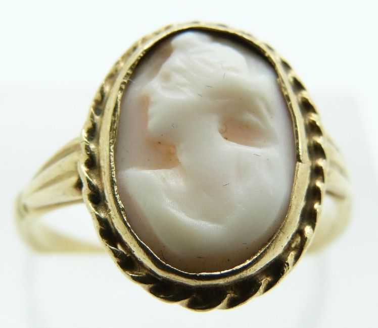 A 9ct gold ring set with a cameo, 3.2g, size P