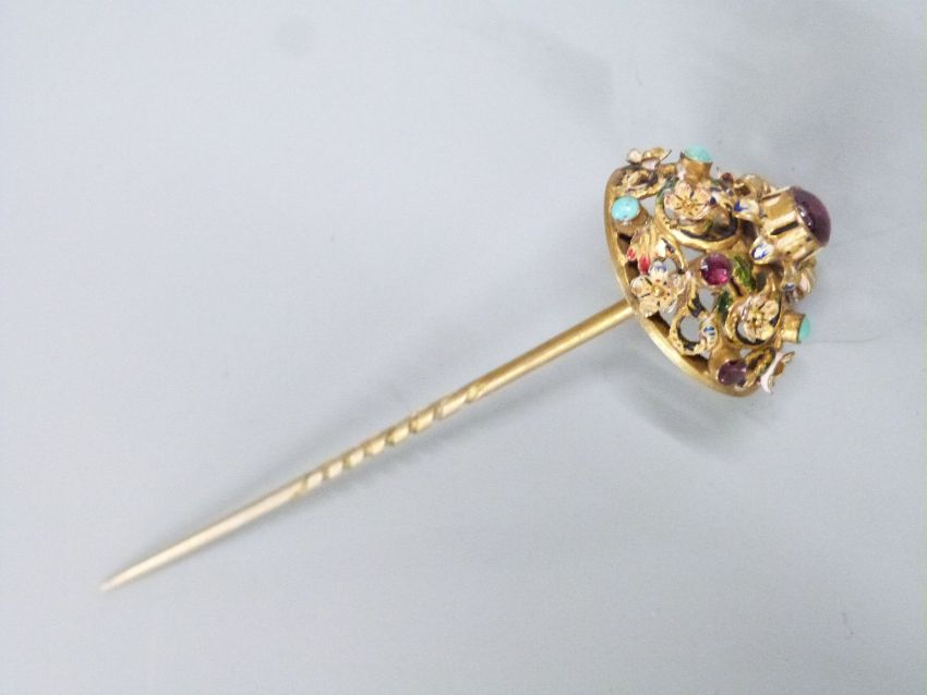 Vizagapatam inlaid box, 15cm, metal buttons, Victorian Hukin and Heath orange peeler, 19thC compass, diameter 5.5cm, porcelain coat hooks, gilt and enamel hat pin set with cabochons etc