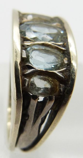 A 9ct gold ring set with an aquamarines, 6.6g, size N