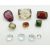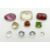 A collection of loose stones including three round cut aquamarines, feldspar, garnet, etc