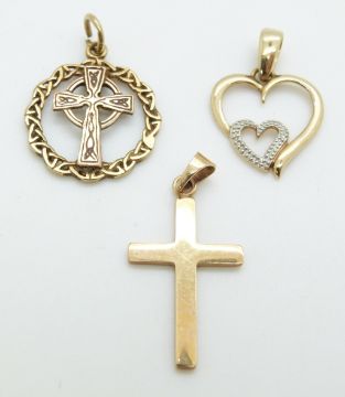 Three 9ct gold pendants, 3.9g