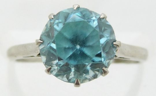 A platinum ring set with a round cut zircon, 3.3g, size J