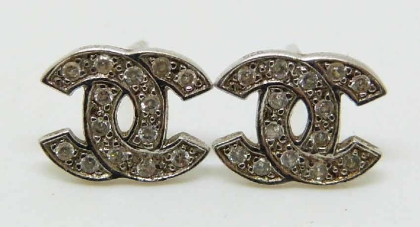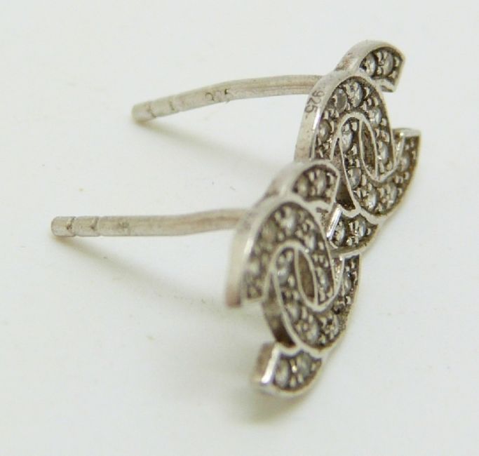 A pair of 9ct white gold earrings in the Chanel logo, 0.8g