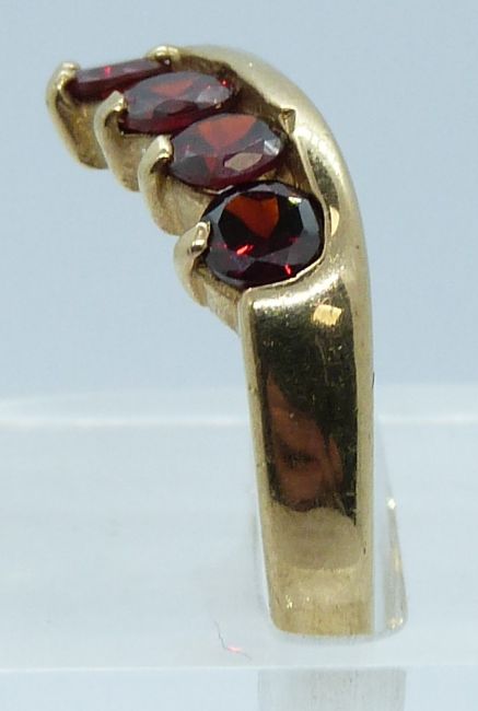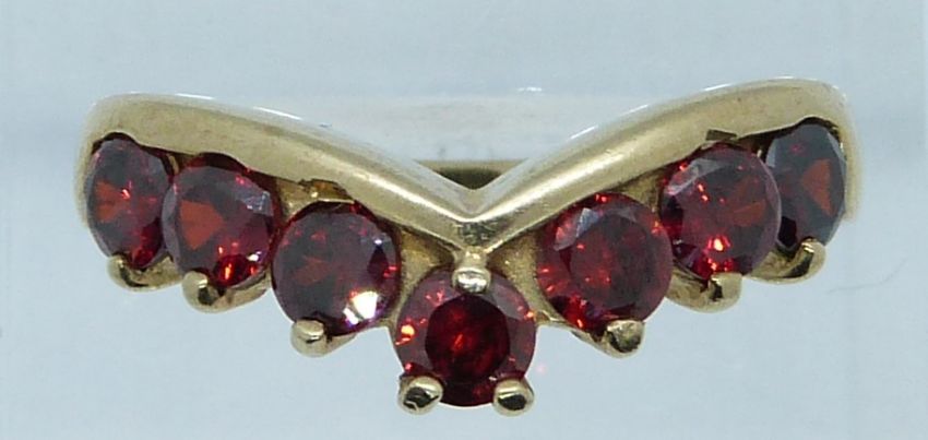 A 9ct gold ring set with garnets in a V setting, 5.2g, size O