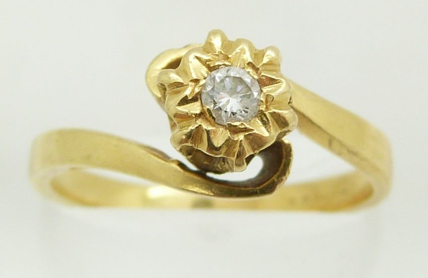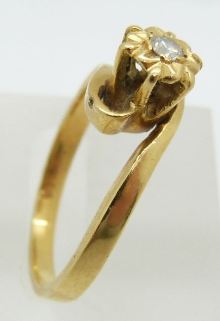 A yellow metal ring set with a diamond, 4.3g, size P