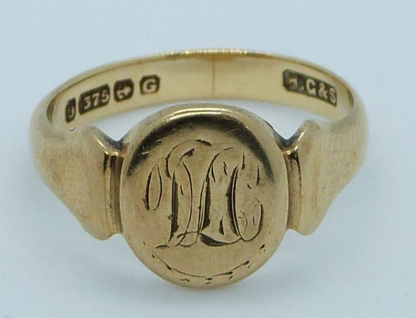 A 9ct gold signet ring, Birmingham 1931, 3.3g, size K
