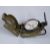 Quantity of collectables to include Goliath pocket watch, Smiths pocket watch with car dashboard or similar magnetic mount, Presta stopwatch, Fero and Lanco wristwatches, Rouen trench art lighter formed as a pistol, J H Heller, Bern two air musical box, RAOC cap badge, marching compass, hardstone seal and two sheath knives, one marked Solingen the other Daiwa