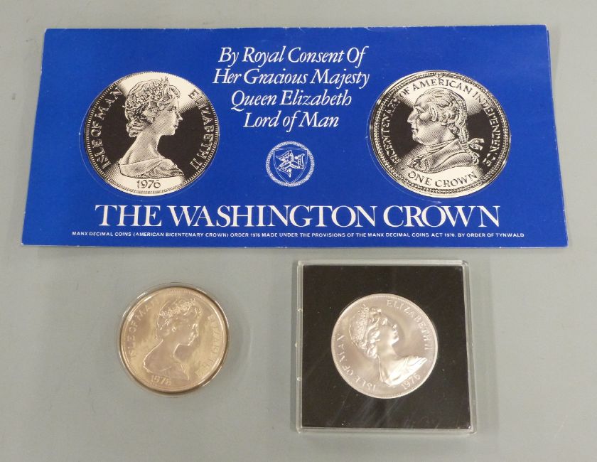 Pobjoy Mint commemorative crowns together with a silver EEC 50p, Washington Crown, Apollo-Soyuz coin/stamp cover etc, most with certificates