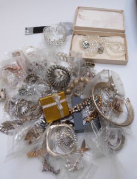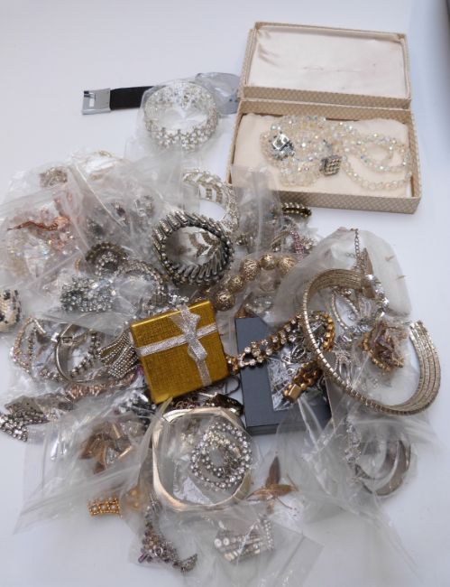 A collection of faux pearl necklaces, vintage and modern paste/ diamanté