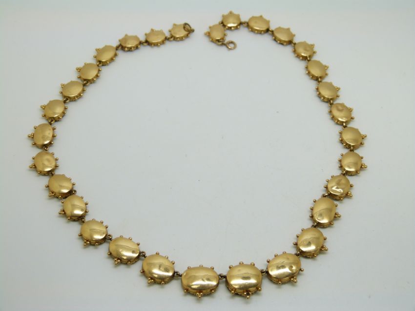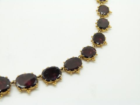 Georgian/ Victorian yellow metal necklace set with graduated foiled garnets
