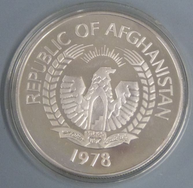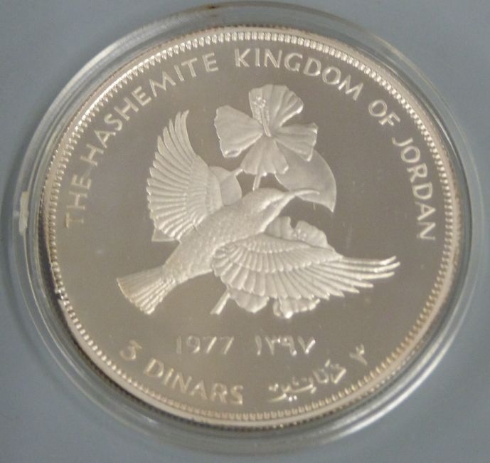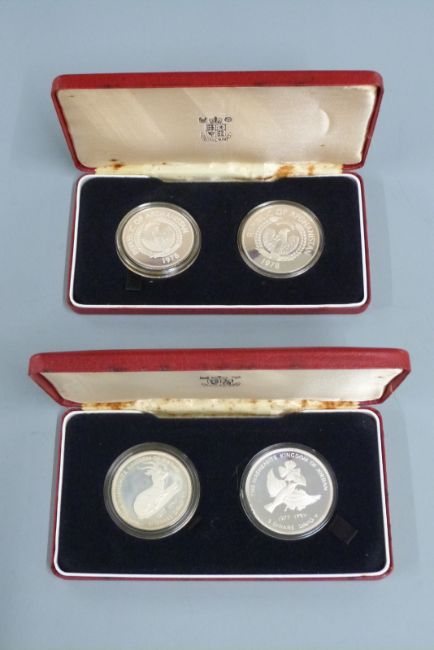 Royal Mint Hashemite Kingdom of Jordan 3 dinar and 2½ dinar silver proof coin set, together with Republic of Afghanistan two coin set, both cased with certificates