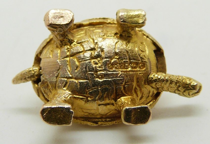 A 9ct gold charm in the form of a tortoise with movable tail and head, 2.4g
