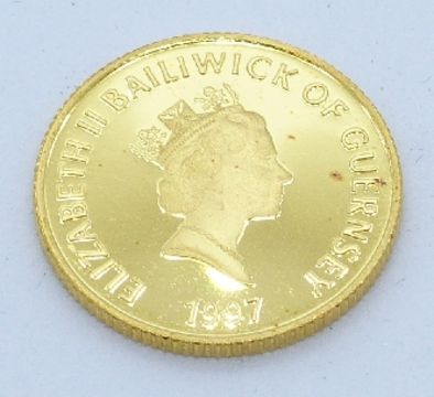 1997 gold proof £25 Guernsey coin commemorating Queen Elizabeth II Golden Wedding Anniversary, cased with certificate no 2037