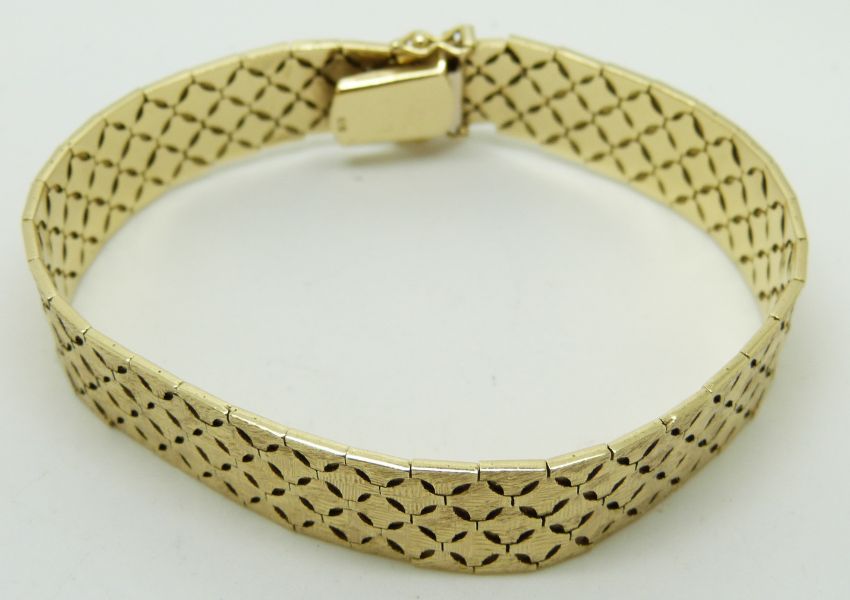 An 18ct gold bracelet with pierced textured decoration, 40.6g
