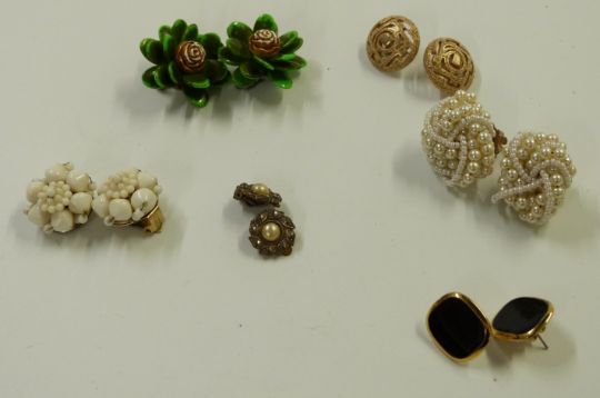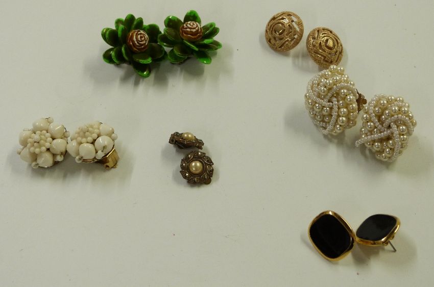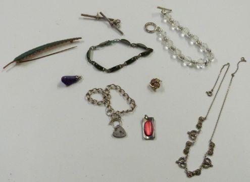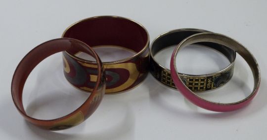 A collection of costume jewellery including Laurana bangles, filigree brooch, Trifari earrings, silver bracelet etc