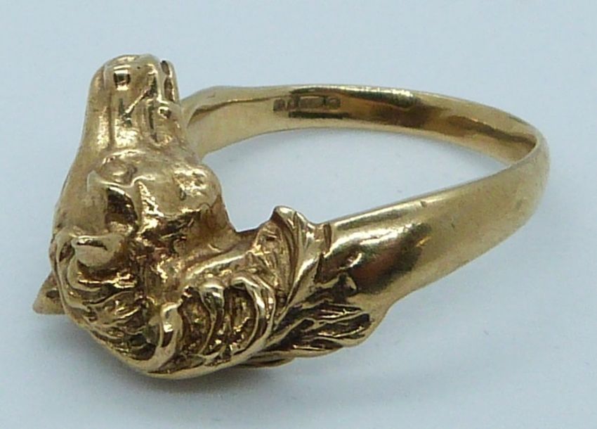 A 9ct gold ring in the form of a horse, 5.9g, size P