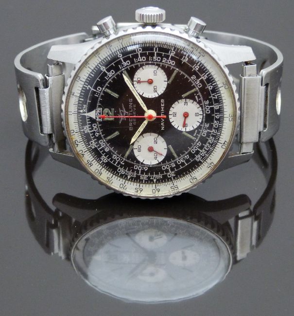 Breitling Navitimer gentleman's chronograph wristwatch ref. 806 with black dial, silver subdials, luminous hour and minute hands, red centre seconds hand, rotating tachymetre bezel, stainless steel case and signed 17 jewel Venus 178 movement, on stainless steel bracelet, case diameter 40mm, serial number 1022309.