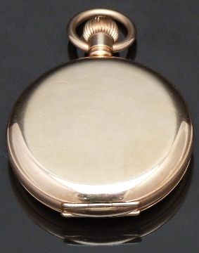 Lancashire Watch Co Ltd of Prescot England gold plated keyless winding full hunter pocket watch with inset subsidiary seconds dial, blued hands, black Roman numerals, white enamel dial and signed movement, case diameter 50mm, serial number 723344.