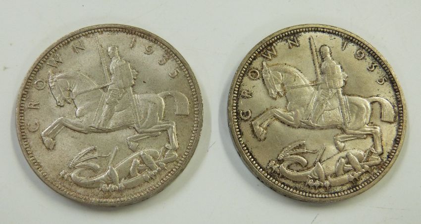 A quantity of UK and overseas coinage including two 1935 rocking horse crowns, Irish Free State etc and some vintage cigarette tins