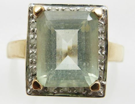 A 9ct gold ring set with an aquamarine and diamonds, 3.4g, size M