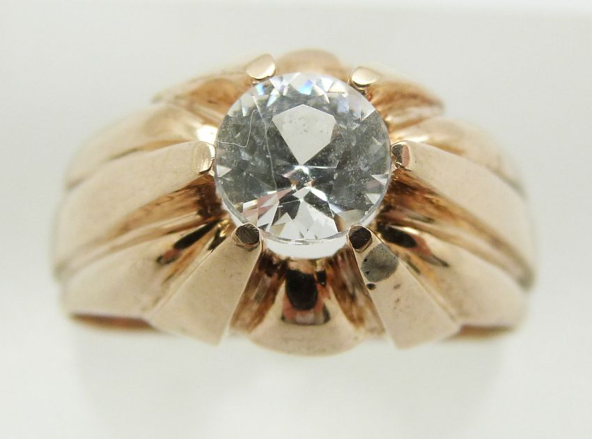 A 9ct gold ring set with a cubic zirconia, 6.7g, size Q