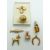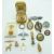Six 9ct gold charms/ pendants comprising horseshoe, windmill, poodle, fish, football and a heart, cross and anchor, silver cat charm, badges and brooches