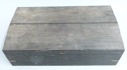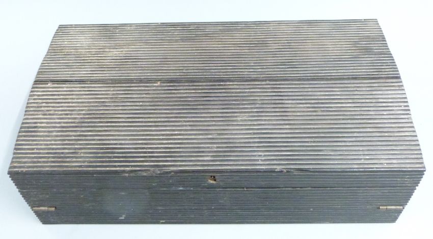 19th/early 20thC ebony writing slope with fitted stationery dividers and ribbed exterior, W42cm