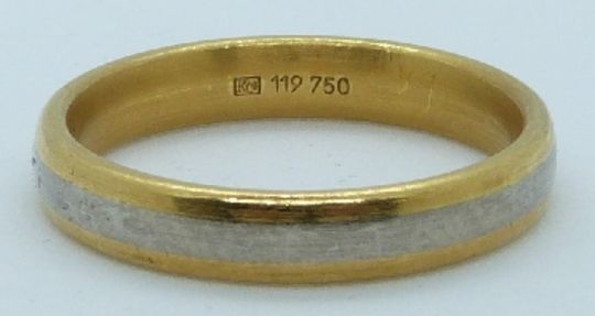 An 18ct gold bi-coloured wedding band/ ring, 7.9g, size W