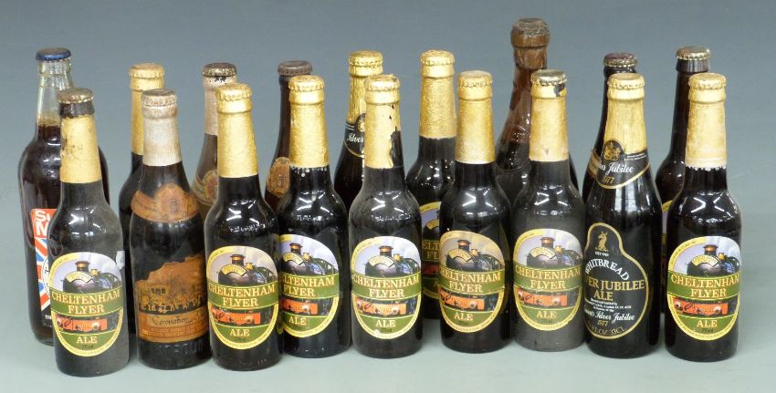 Eighteen bottles of mostly local beers and ales including Stroud Brewery 1953 Coronation Ale, Cheltenham Flyer Ale etc.