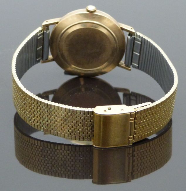 Rotary 9ct gold gentleman's automatic wristwatch with date aperture, two-tone hands and baton markers, silver dial and signed 21 jewel calibre 1905 movement, on gold plated bracelet, case diameter 34mm, serial number 3473.