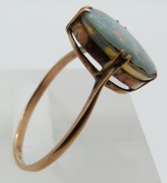 A 9ct gold ring set with an opal doublet, 1.5g, size N