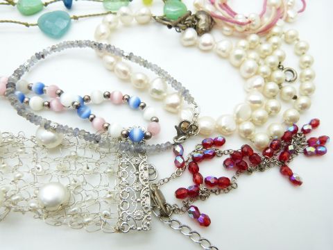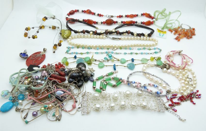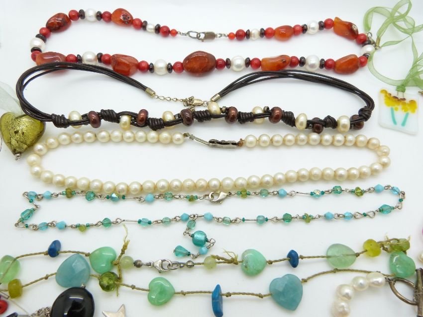 A collection of agate and pearl necklaces