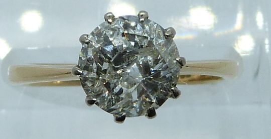 An 18ct gold ring set with a round cut diamond of approximately 2.12ct, 3.2g, size N
