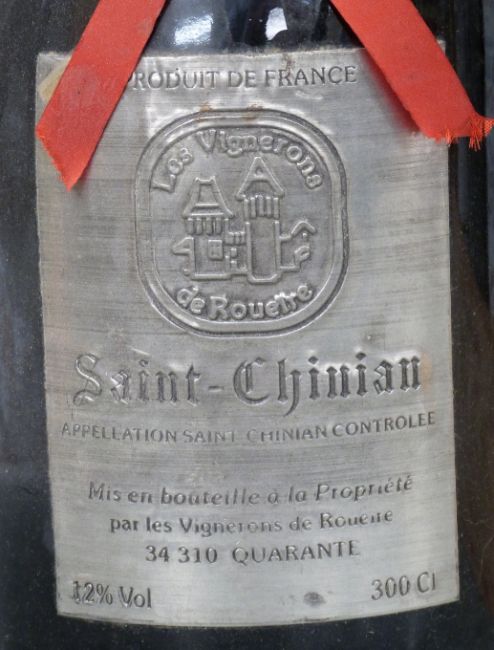 Four bottles of French red wine comprising St Chinian 1998, 300cl, 12% vol, in original presentation box and three bottles of French red wine in 'Chateaux & Traditions' wooden presentation case.