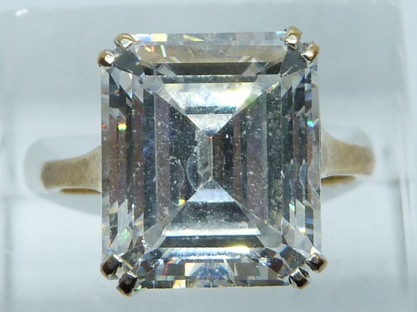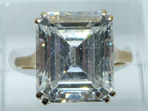 A 9ct gold ring set with and emerald cut cubic zirconia, 6.2g, size N/O