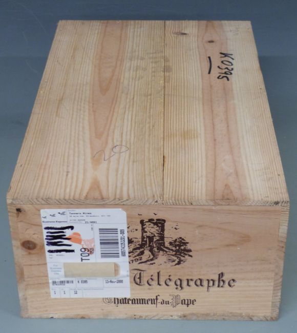 Case of twelve bottles of Chateauneuf du Pape Vieux Télégraphe 1998 red wine, 750ml, 12.5% vol, sealed in original wooden case.