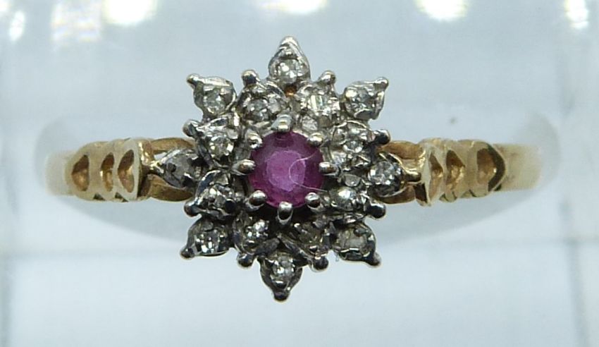 A 9ct gold ring set with rubies and diamonds, 1.6g, size O/P