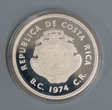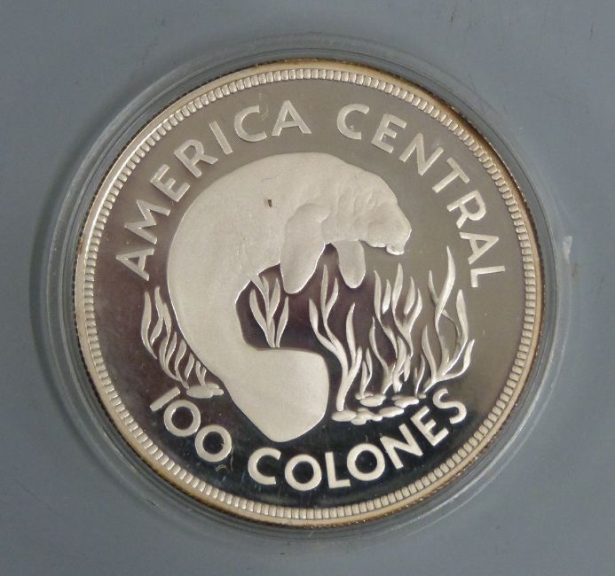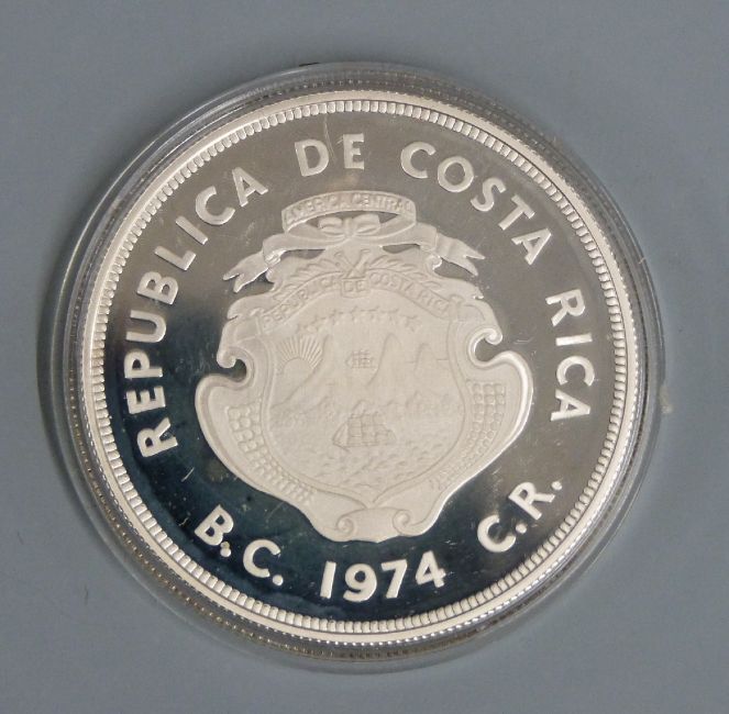 Royal Mint Conservation Coin Collection silver proof coins comprising Republic of Costa Rica 100 and 50 colones, and a 1977 UK silver Jubilee crown, all cased with certificates