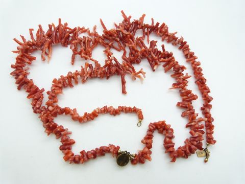 A large coral necklace made up of natural strands