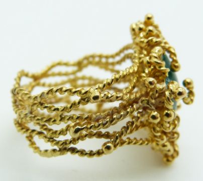 An 18ct gold ring set with a square cut chrysophase cabochon, 10.2g, size O